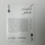 The cards are a simple set of standard playing cards (if you don’t want to speculate, you can always gamble). The four suits are three different sets of characters you’ll use in your story plus 13 Reflection Cards which you’ll use to creatively think through what you have found out through your speculation