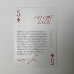 The cards are a simple set of standard playing cards (if you don’t want to speculate, you can always gamble). The four suits are three different sets of characters you’ll use in your story plus 13 Reflection Cards which you’ll use to creatively think through what you have found out through your speculation